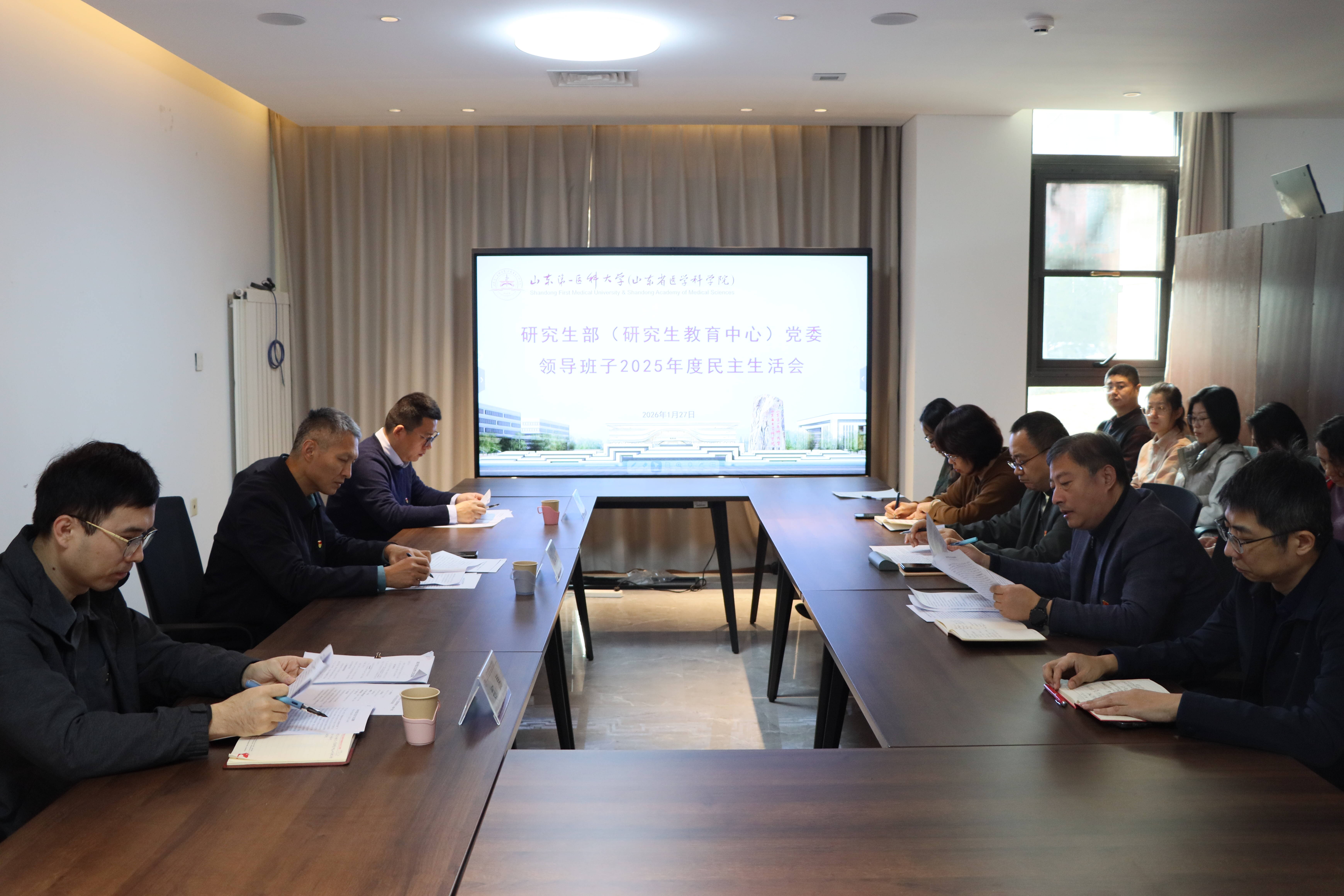 根据校(院)党委统一部署,1月27日上午,研究生部(研究生教育中心)党委召开2025年度民主生活会,深入学习贯彻习近平新时代中国特色社会主义思想,全面贯彻落实党的二十届四中全会精神,围绕锲而不舍落实中央八项规定精神,推进作风建设常态化长效化,结合思想和工作实际进行自我剖析、党性分析,开展批评和自我批评。