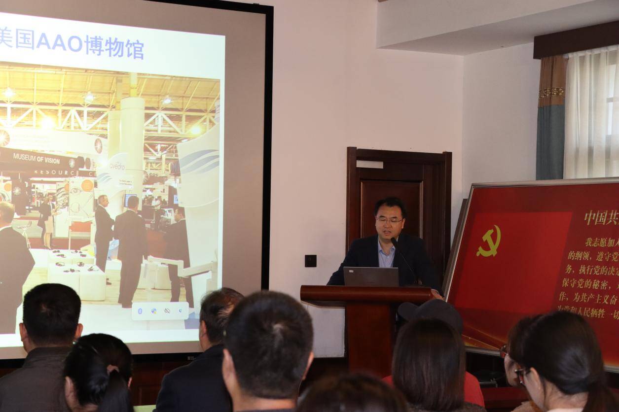 活动伊始,师生共同聆听了山东第一医科大学附属眼科研究所所长、眼科学院党委书记、山东眼科博物馆馆长高华教授以“党建文化建设赋能专业高质量发展”为题的专题报告。报告中,高华教授系统回顾了附属眼科医院在谢立信院士带领下,自1991年以3人团队、25万元起步的艰辛创业之路——二十五年风雨兼程,团队始终秉持奋斗初心、坚守自强本色,在攻坚克难中不断突破,最终成长为员工近900人的现代化医疗机构,生动诠释了奋斗精神的代代相传与自强之魂的坚韧铸就。同时,他重点介绍了医院在学科建设方面的亮眼成就:不仅两次斩获国家科技进步奖,更成功跻身全国专业排行榜前十,这些突破性成果既是奋斗者们实干笃行的结晶,更是自强精神在医疗领域的有力彰显。